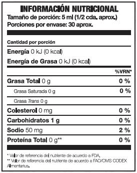Agua, chiles jalapeño y chipotle, cebolla, vinagre de caña, azúcar, sal, limón, goma xanthan (espesante), ajo.