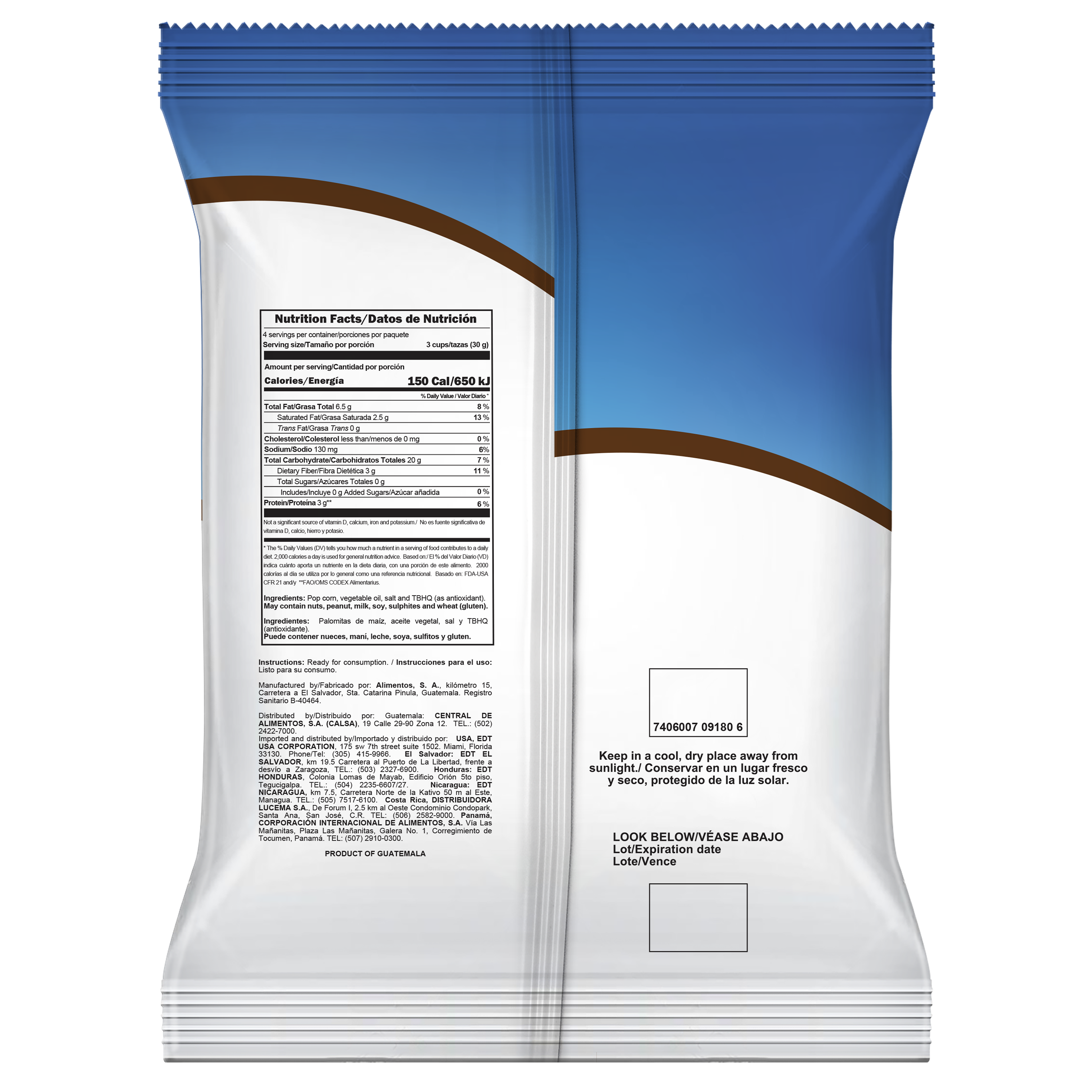 Ingredientes: Palomitas de maíz, aceite vegetal, sal y TBHQ (antioxidante).