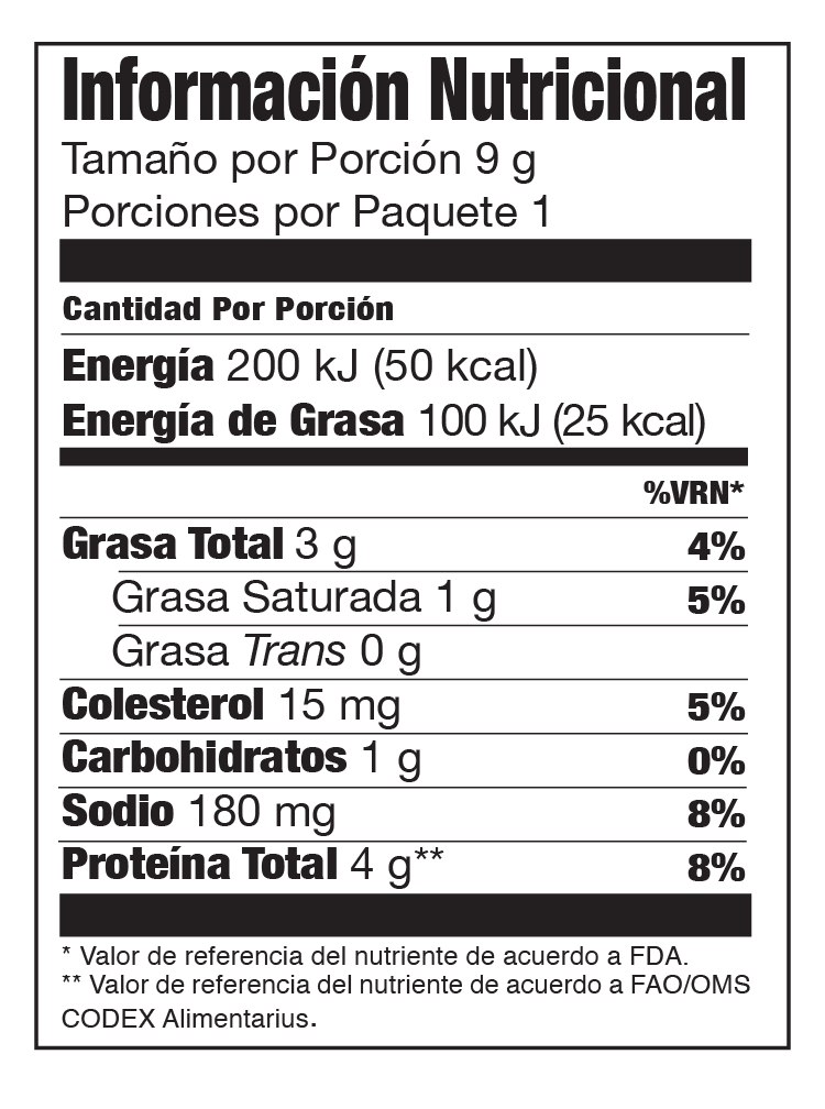 CONTIENE GLUTEN Y SULFITOS. Elaborado en equipo que también procesa productos que contienen leche y soya.